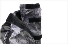 広範囲のサイズに対応するためふくらはぎ側にアジャスタブルベルクロを採用。全4箇所で固定しフィット感を高めます。