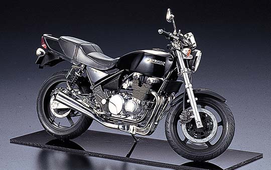 ●脱レプリカモデルとして、89年にカワサキから発売されたのがZEPHYRです。●水冷エンジンが主流の中で空冷エンジンを採用、出力も敢えて46PSにし、常用性能を重視しています。●また、パイプハンドルや2本サスなど無理のないスタイリングも大きな魅力のひとつです。●そのZEPHYRを1/12スケールでモデルアップしました。● 全長175mm、全幅62mm、全高91mm、空冷エンジンをはじめ、キャブレター、オイルクーラーなど、精密にモデル化。●プラグコードやブレーキワイヤー等は、ビニールパイプで配線されます。●